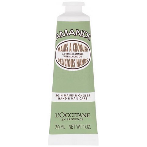 L'Occitane Mains a Croquer Delicious - silnie odżywczy krem do rąk o przyjemnym zapachu migdałów. Mleczko migdałowe w połączeniu z olejkiem migdałowym nie tylko pachnie, ale także doskonale odżywia, chroni i nawilża dłonie.